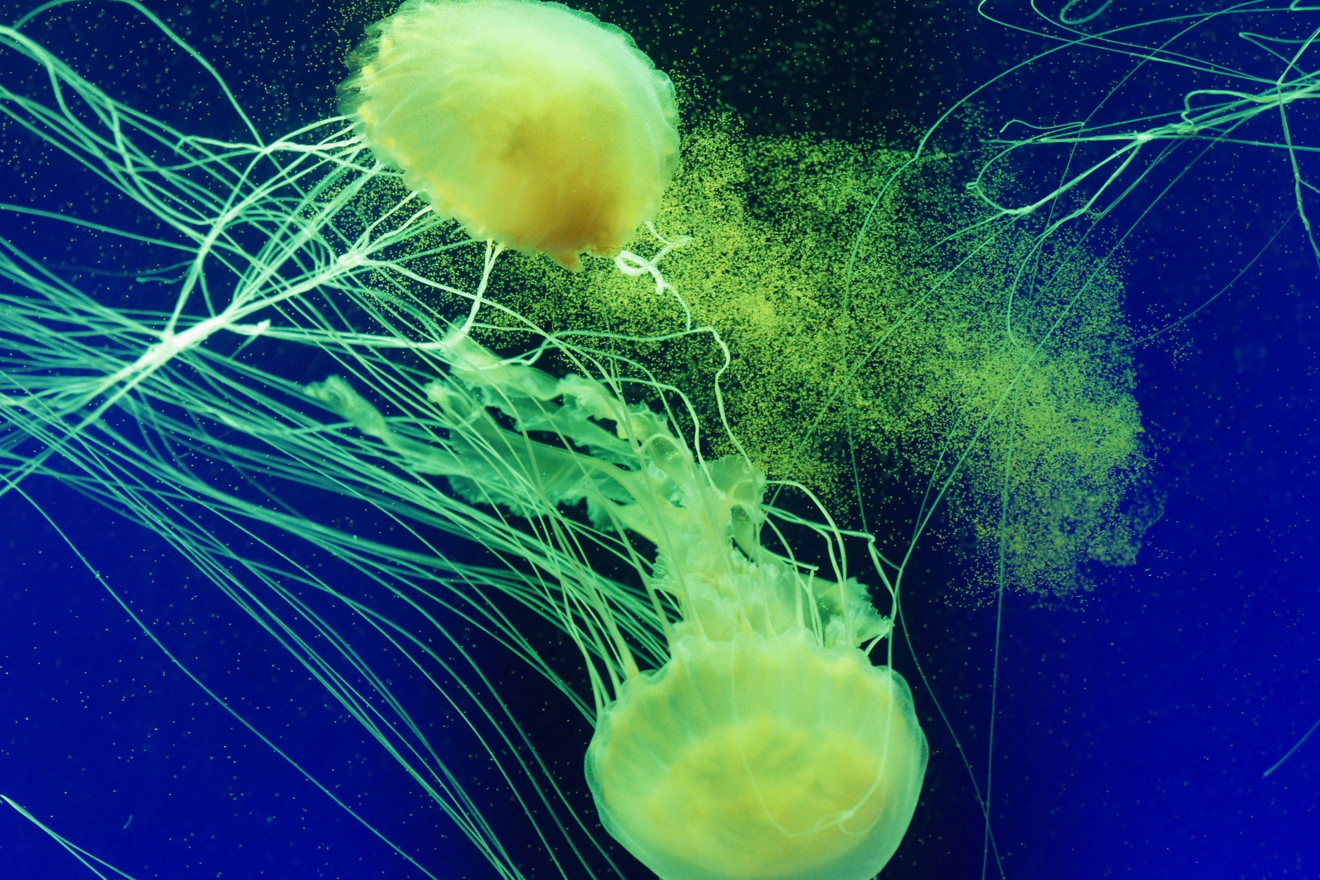 水母迷宫,这里除了地面以外,四周都是镜子,利用光的直线传播和平面镜/成像原理,仿佛带我们来到了水母的世界。水母长廊,墙上的视窗为我们展示了水母的生长过程,成年水母的精子和卵子在海中结合,形成浮浪幼虫,这些幼虫附着在坚硬的物体表面上,发育成为水螅体。水母综合展示区,首先为您介绍的是20米长的水母幕墙,里面呈现的是数千只海月水母。