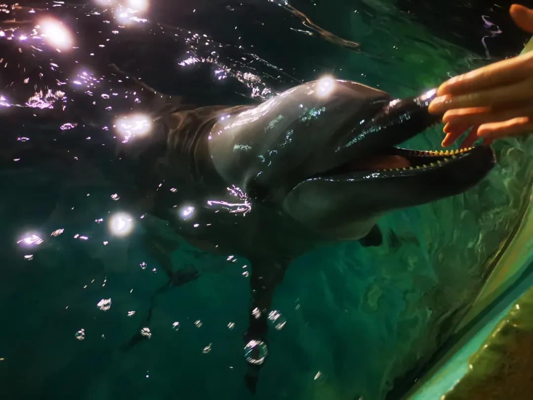 曲江海洋极地公园海豚、海狮表演位于极地馆内欢乐表演场,欢乐表演场可同时容纳2000人观赏海豚表演,此外,通过展池下方的亚克力视窗可近距离直接观察到海豚在水下生活的场景,以满足游客对海洋动物观赏的需求。海豚当属曲江海洋极地公园动物明星中的资深前辈了,握手、唱歌、登陆、绝妙的高空顶球、震撼的环场跳跃,对它们来说都是小菜一碟了,它们与驯兽师们共同上演的精彩水秀火箭飞人更是精彩绝伦。