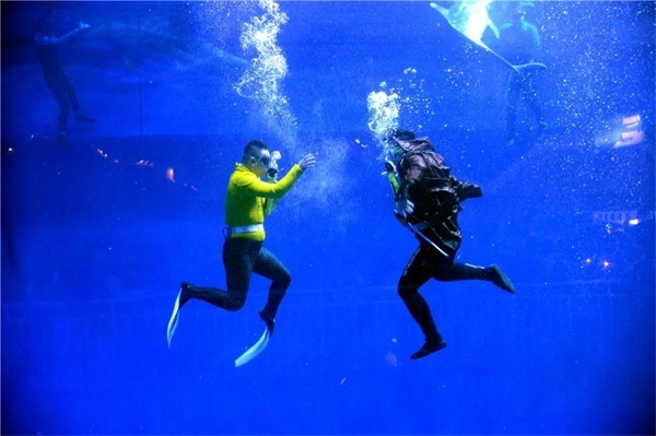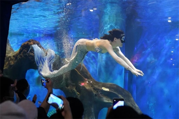 每个人心中都有一个美人鱼的童话故事,遇见海之女儿美人鱼,更是众多人童年的欢乐梦想。曲江海洋极地公园倾情演艺美人鱼的传说,将童话故事活灵活现于海洋世界。蔚蓝的海水里,多姿多彩游弋的鱼群中几个美丽优雅的彩色身影从阳光海面上缓缓下潜,出现在观众眼前。优雅婀娜的身姿在海水中轻盈的游动,不时翻转一下美丽的鱼尾,转身面向观众,挥动双臂用水泡画出心形图案,每一个水下优美的动作都仿佛在诉说来自大海的传奇,将观众带入到神秘的海洋世界。