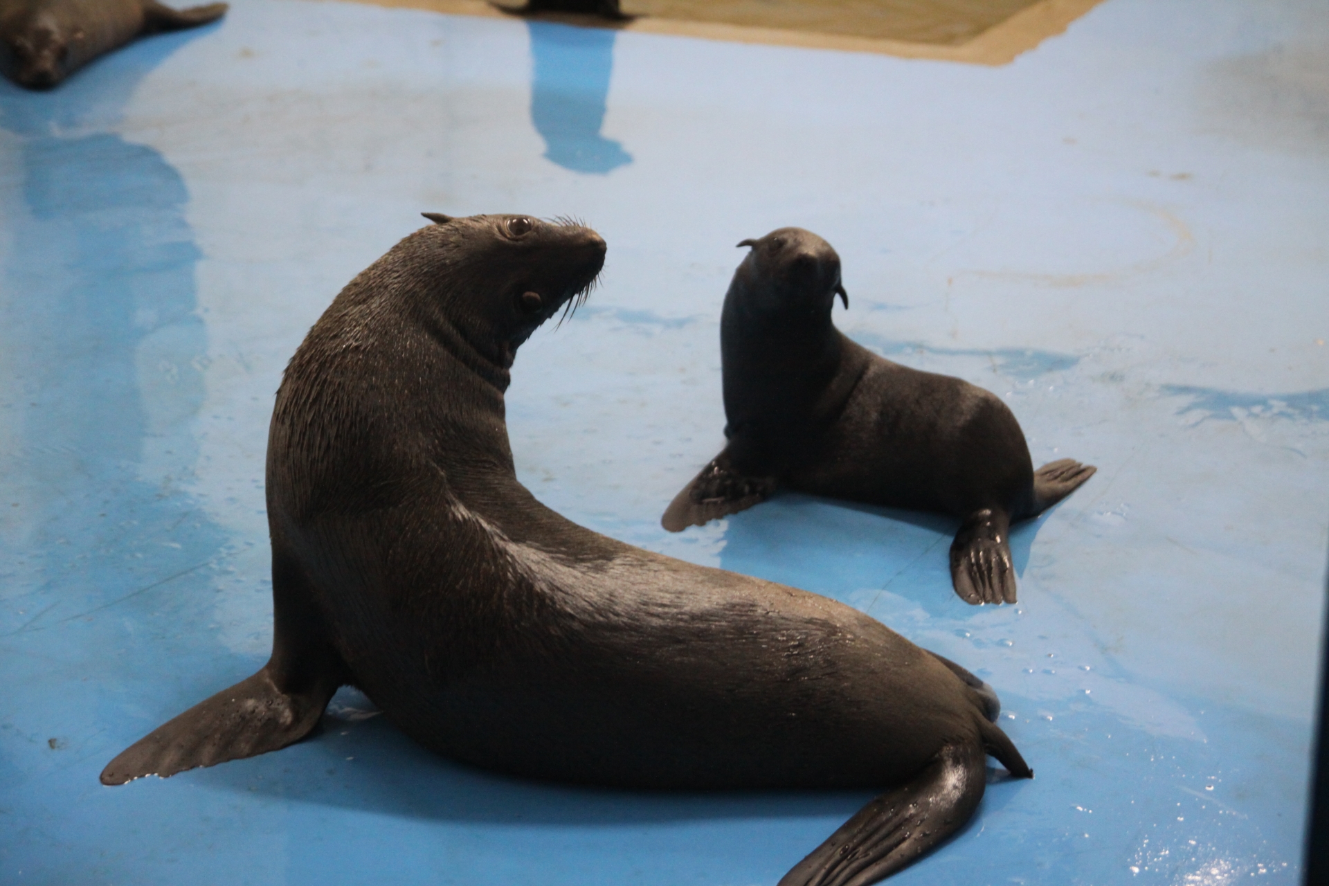 海狗是生活在海洋里的哺乳动物,因为头部像狗而得名,它们的身体呈纺锤形,头部圆圆的,眼睛比较大,有一对小巧的耳朵,身体表面上的皮毛浓密又光滑,又称“毛皮海狮”,背部是棕灰色或黑棕色的,腹部的颜色比较浅,四肢呈鳍状,很适合在水里游泳。它们在水里游得非常自如。上到陆地之后,还可以用四肢缓慢地行走。这里的海狗喂食演出,将海狗的萌态一览无遗。